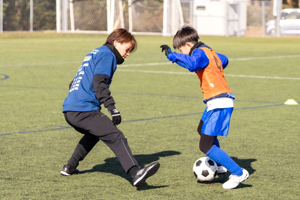 挑戦してくれた子供たちたちは「すごい…!」と驚きながらも必死に食らいつき、なんと勝つ子も。 「どうすればプロのようにうまくなれるのか?」「1対1で勝つには何が必要か?」そんなことを考えながら挑戦し、成功の喜びと難しさの両方を実感。ただ楽しいだけでなく、サッカーの奥深さを感じる貴重な機会となりました。