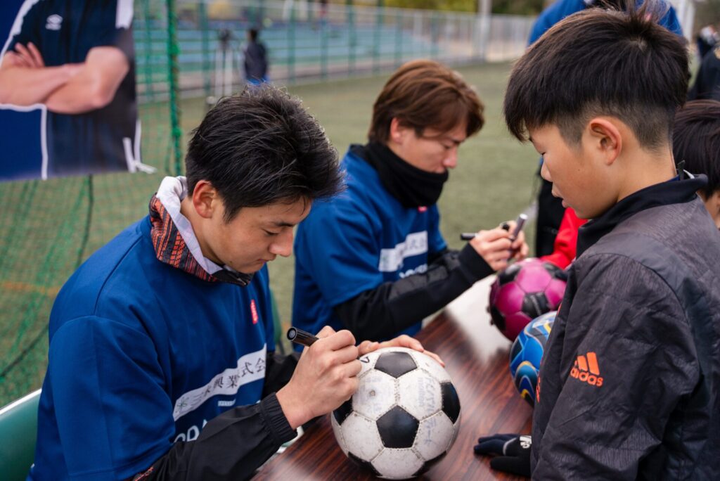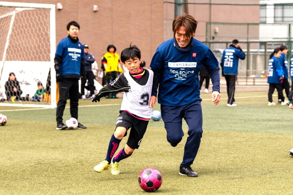 小田と橋本選手も、子供たちの本気の姿勢に全力で応え、真剣勝負の中で、成長のヒントを伝えていきました。「また挑戦したい!」そんな声が次々と聞こえ、未来のスター誕生を予感させる、熱気あふれるサッカー教室となりました。