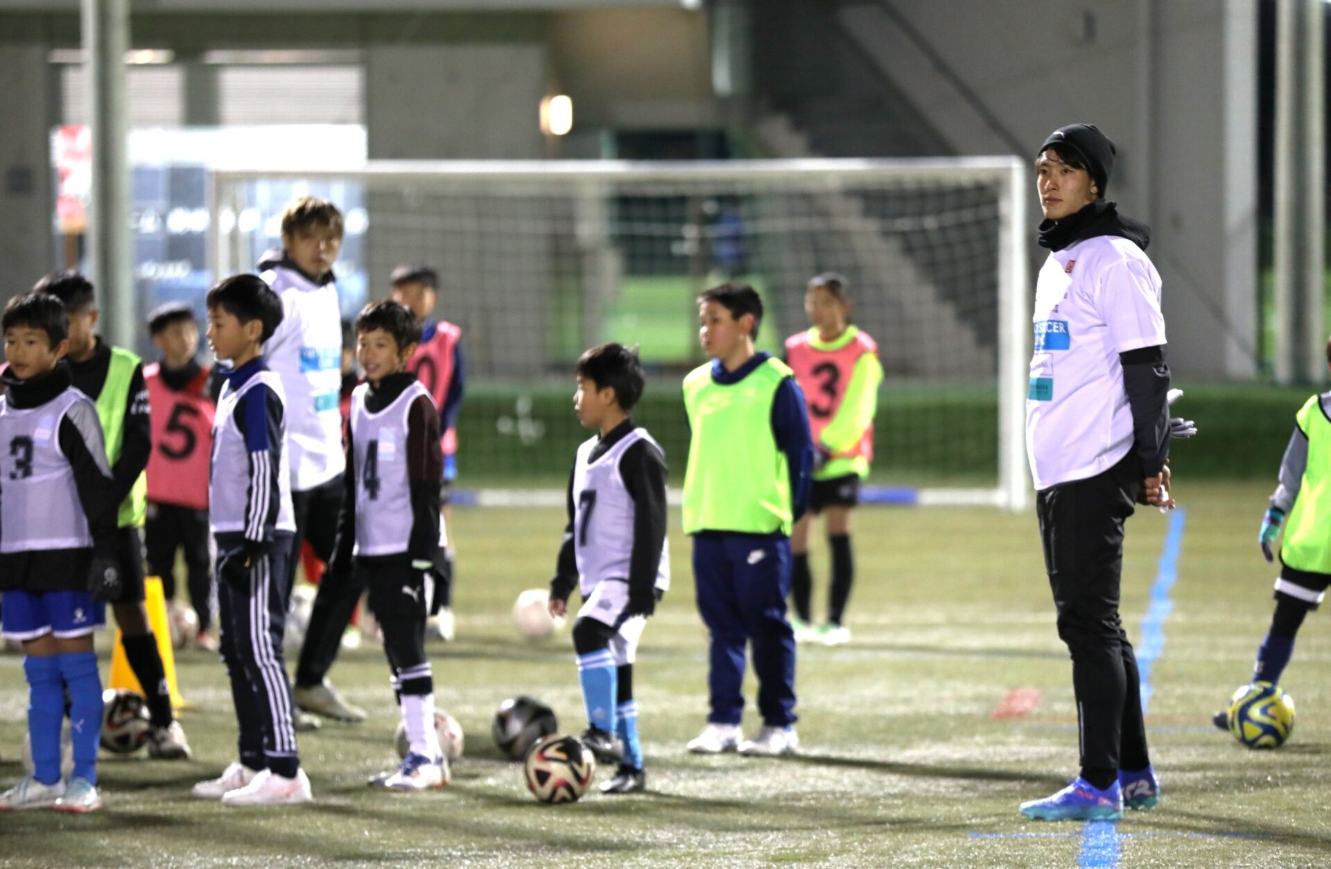 また、ロングキックは「ボールを蹴りやすい位置にコントロールすることから始まる」という鈴木の大切にしているポイントに基づき、キックのコツだけでなく、飛んできたボールを正確にコントロールする技術も含めた総合的な指導を行いました。