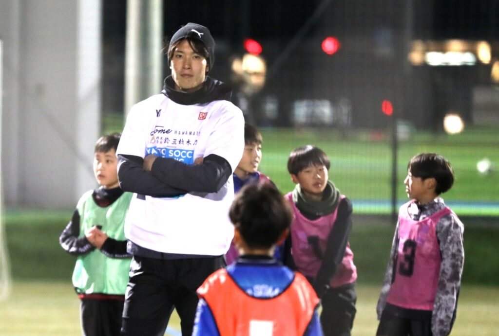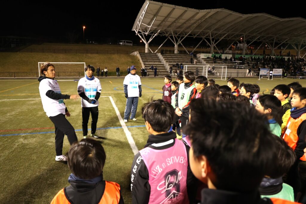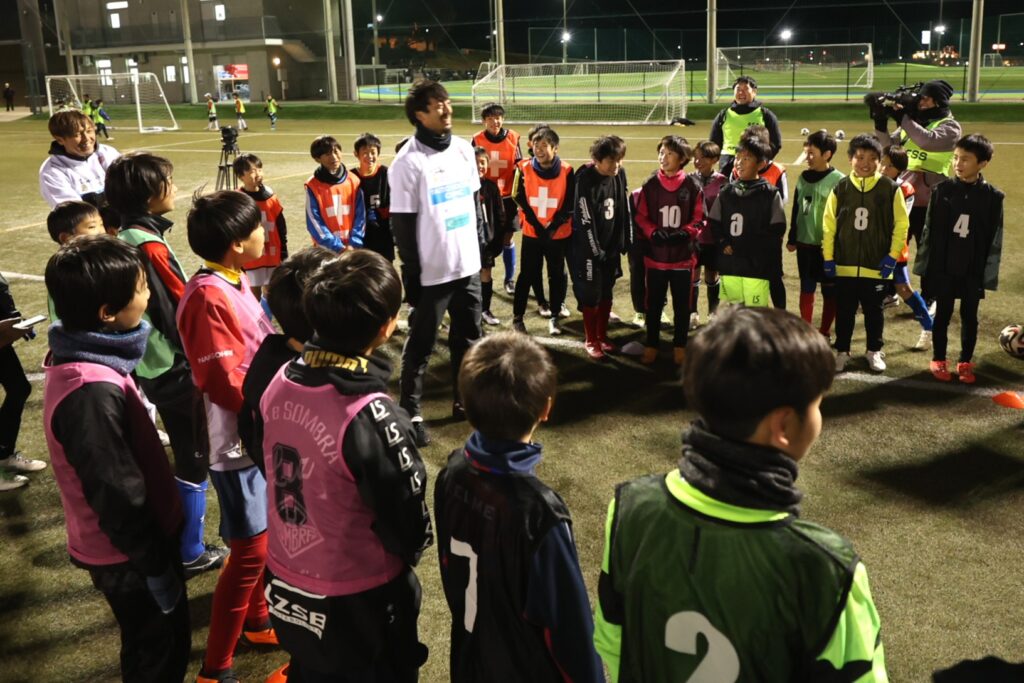 また、プロ選手両名は選手個々それぞれの課題を見つけアドバイスをするなど、親身になって指導。サポートに来た遠藤からからパスを受けてシュートを打つなど、子供たちは緊張しながらもとても高いモチベーションでトレーニングに励んでくれました。